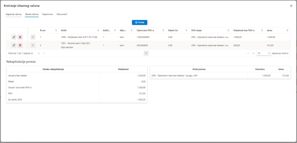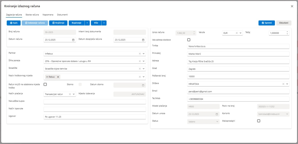 - Izdavanje računa