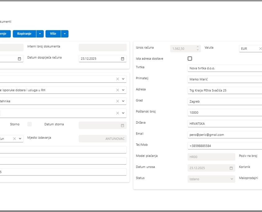 - Osnovni šifrarnici i matični podaci – (partneri, artikli, porezi, valute, dokumenti, statusi)