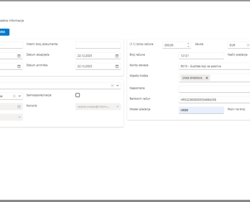 - Financijsko računovodstvo – (glavna knjiga, URA/IRA, izvodi, automatska knjiženja, izvještaji)