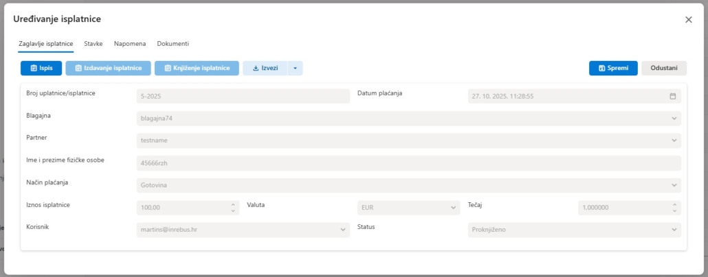 - Blagajničko poslovanje – (blagajna, uplate/isplate, blagajnički izvještaji)